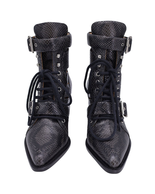 Chloe Rylee Cutout Snake-Effect Ankle Boots in Black Leather