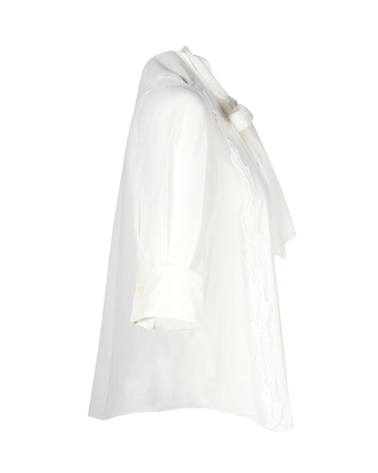 Chloe Scarf Collar Blouse in White Silk