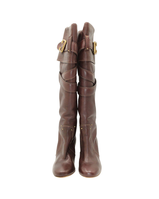 Chloe Paddington Knee Boots in Brown Leather