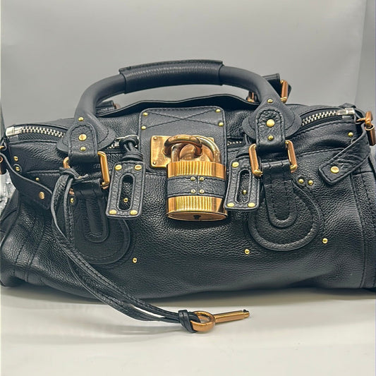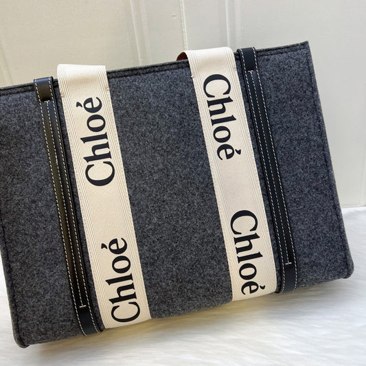 Chloe Woody Medium Tote Bag in mere Grey Felt Fabric and Black Leather Trim