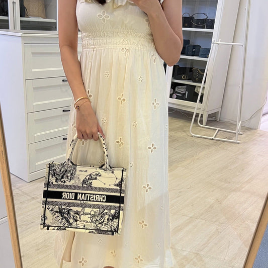 Dior Small Book Tote in Latte and Black Toile de Jouy Zodiac Embroidery