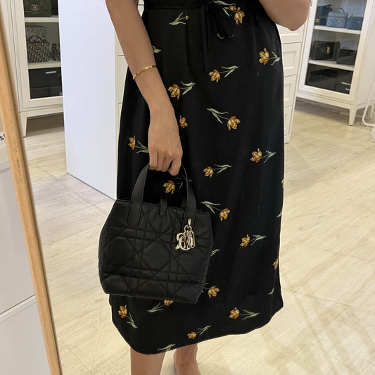 Dior Small Toujours Vertical Tote in Black Macrocannage Calfskin and GHW (Model: M2835OSNW)