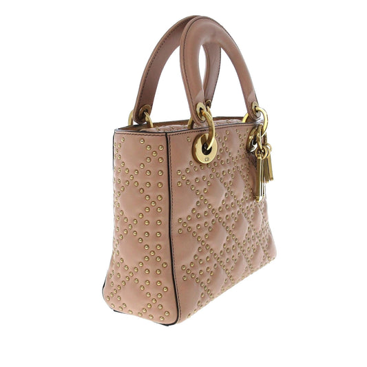 Dior Small Cannage Supple Lady Dior Studded Leather Satchel (SHG-AKuaqA)