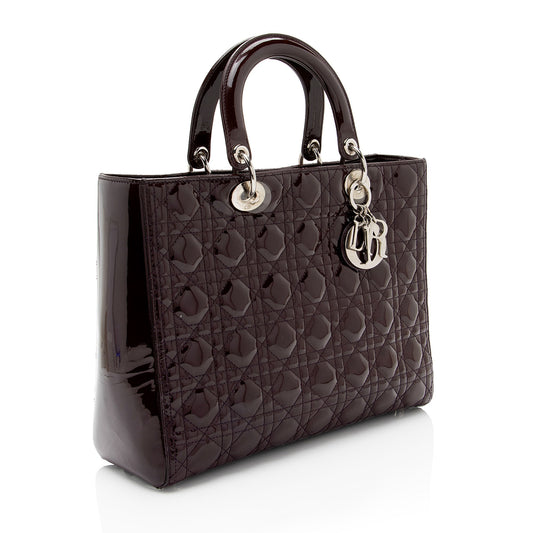 Dior Patent Leather Lady Dior Large Tote (SHF-EZ4EwJ)