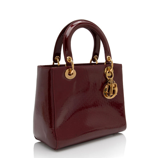 Dior Vintage Micro Diorissimo Patent Leather Lady Dior Small Tote (SHF-RTBS3t)