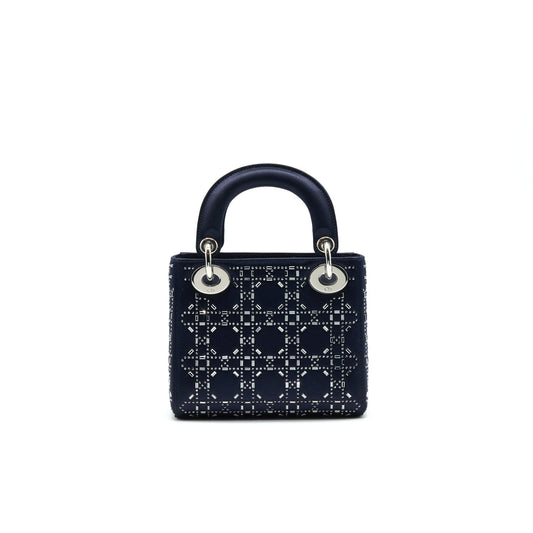 CHRISTIAN DIOR Satin Crystal Cannage Mini Lady Dior in Navy