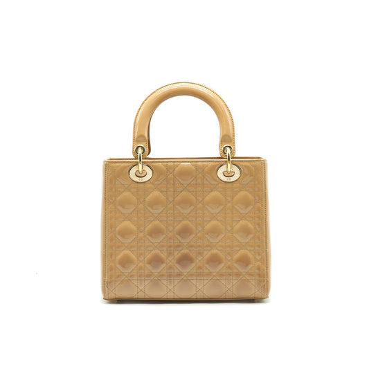 Christian Dior Medium Lady Dior Patent Leather Beige