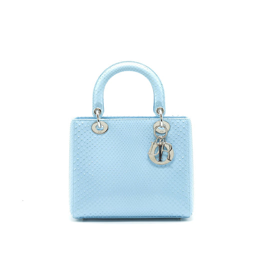 CHRISTIAN DIOR PYTHON MEDIUM LADY DIOR BAG SKYBLUE WITH SMALL SCARF