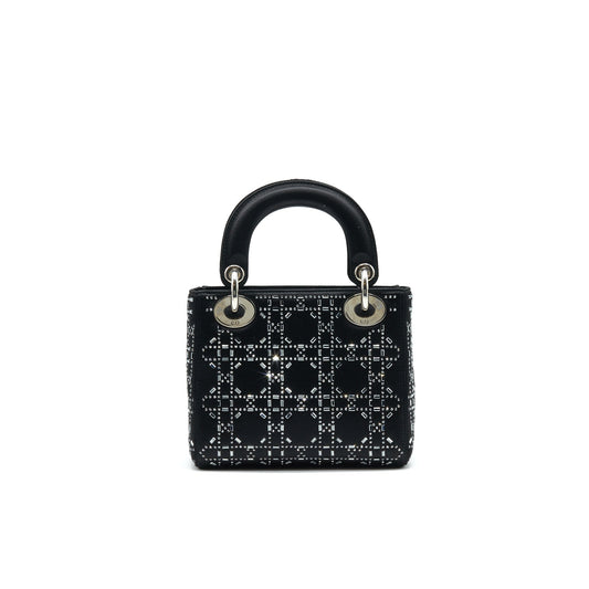 CHRISTIAN DIOR Satin Crystal Cannage Mini Lady Dior Black