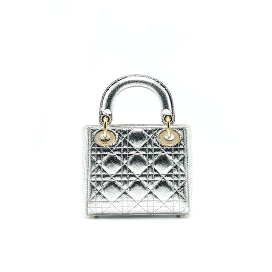 CHRISTIAN DIOR MINI LADY DIOR METALLIC SILVER