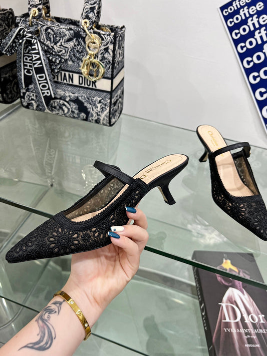 DIOR pump 65 transparent mesh embroidered black flower moitf