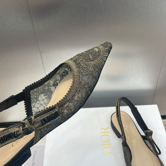 DIOR slingback flat transparent mesh embroidered black sun motif