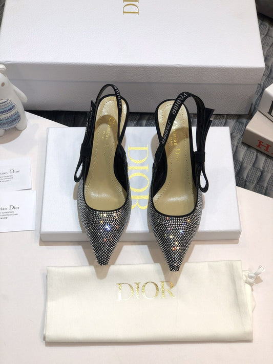 DIOR JA DIOR slingback flat black full diamond crystal and seude