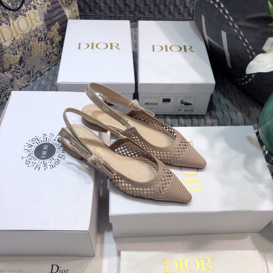 DIOR JA DIOR slingback flat transparent mesh beige embroidered cotton