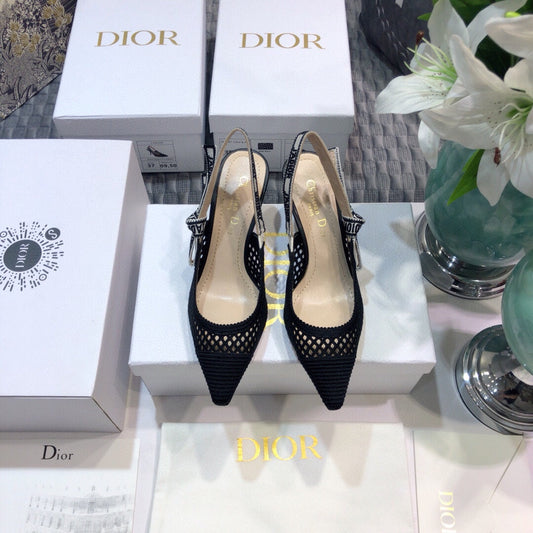 DIOR JA DIOR slingback pumps 65 full transparent mesh black embroidered cotton