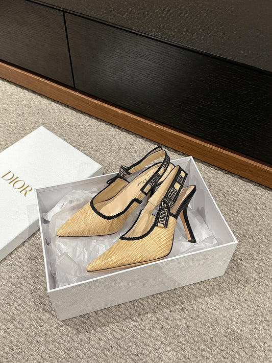 DIOR JA DIOR slingback pumps 95 all black embroidered cotton