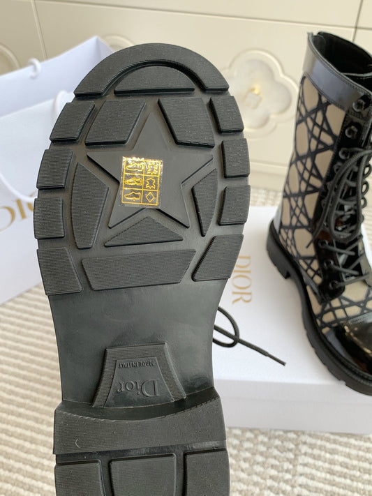 DIOR D-Unit Ankle Boot In Dark Beige Mix Black Canvas And Glossy Cowhide 105082