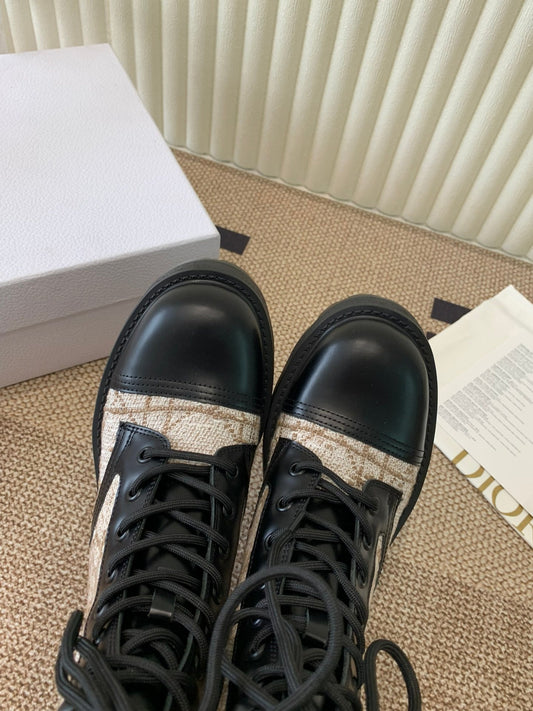 DIOR D-Unit Ankle Boot In Beige Mix Black Tweed Fabric And Cowhide 113478