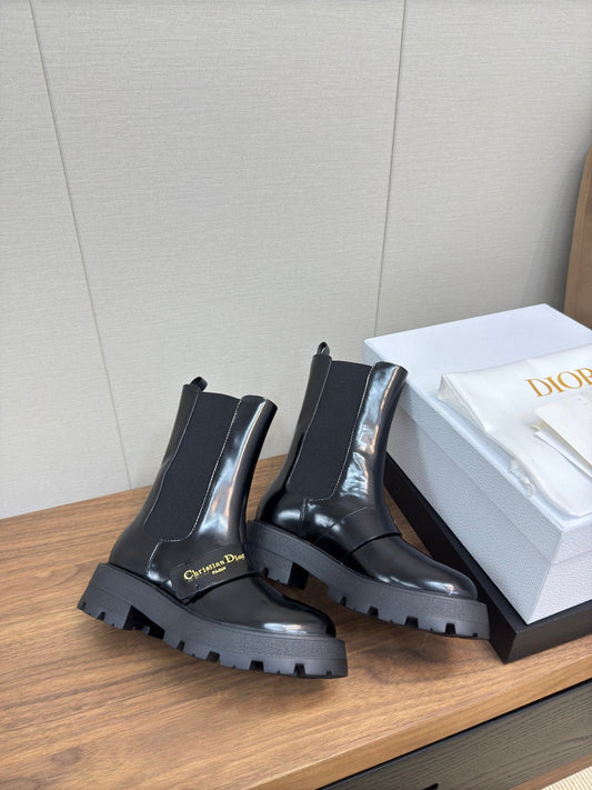 DIOR D-Quest Ankle Boot 40mm In Glossy Black Calfskin 112937