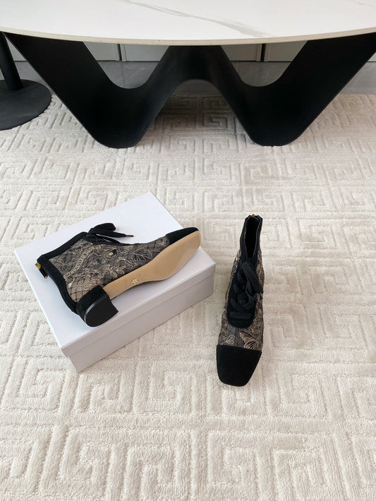 DIOR Naughtily-D Heeled Ankle Boot Black Transparent Mesh Butterfly And Suede