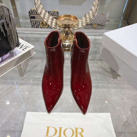 DIOR D-Idole Heeled Ankle Boot In Red Glossy Lambskin 996442