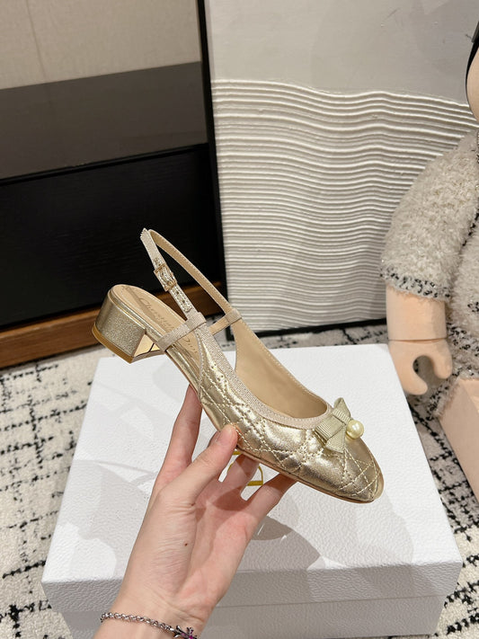 DIOR Ballet Slingback Pump 30mm In Gold Quilted Calfskin 997041