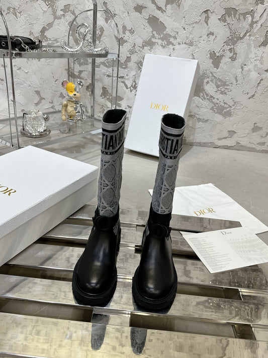 DIOR D-Major Boot In Grey Mix Black Denim Fabric 100570