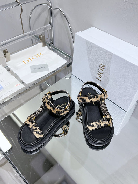 DIOR D-Wave Sandal In Drak Beige Black Cowhide 100765