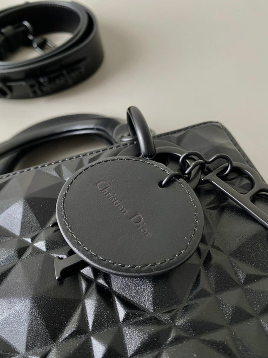 DIOR SMALL LADY 20 ALL BLACK LAMBSKIN DIAMOND MOTIF