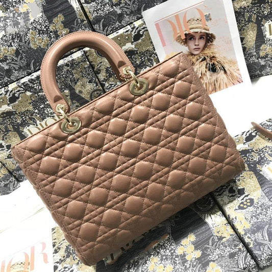 DIOR LARGE LADY BAG 32CM BEIGE CANNAGE LAMBSKIN