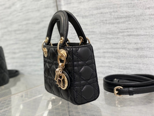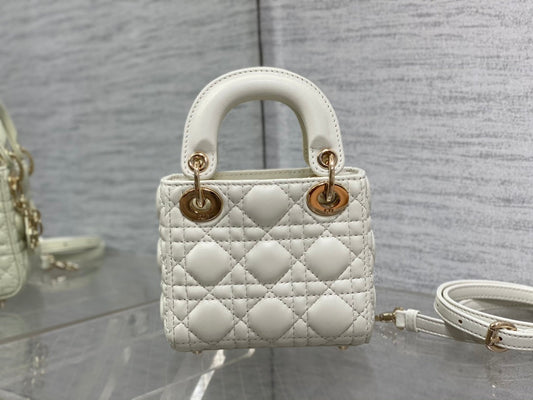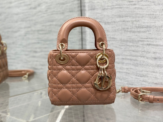 DIOR micro lady 12 pinkish brown lambskin ghw