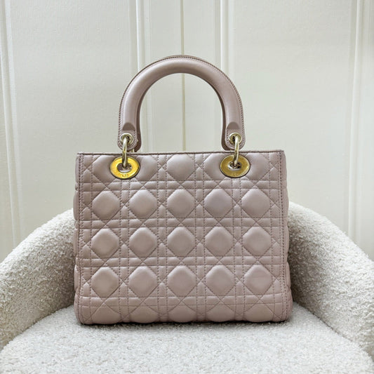 Dior Medium Lady Dior in Lotus Pearly Pink Lambskin LGHW (New version with Adjustable Strap)