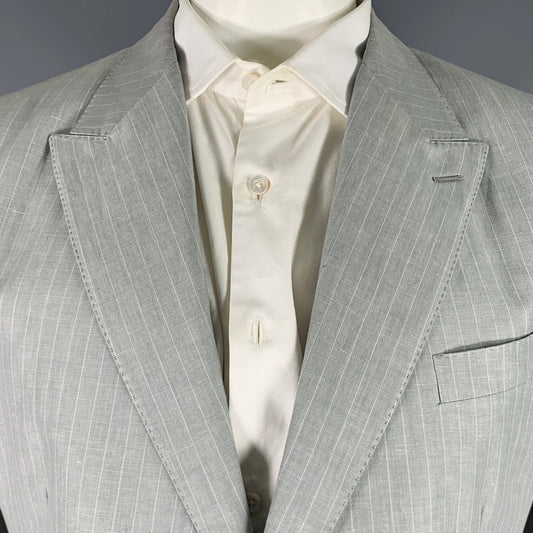 DOLCE & GABBANA Size 46 Light Gray Stripe Linen Cotton Notch Lapel Suit