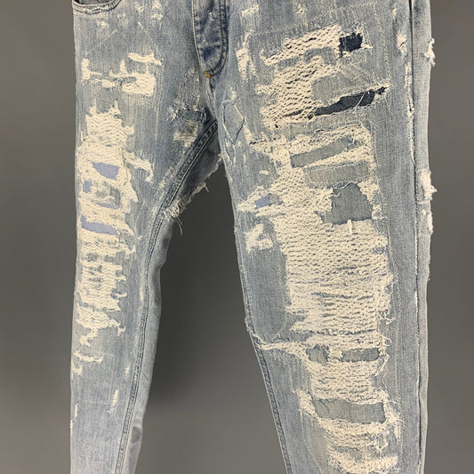 DOLCE & GABBANA Size 32 Light Blue Distressed Cotton Skinny Jeans