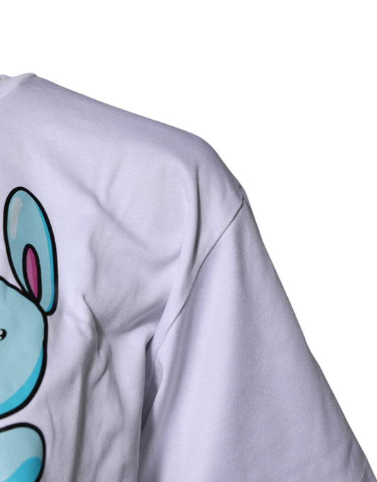 Dolce & Gabbana White Printed Round Neck Top Cotton Women's T-shirt