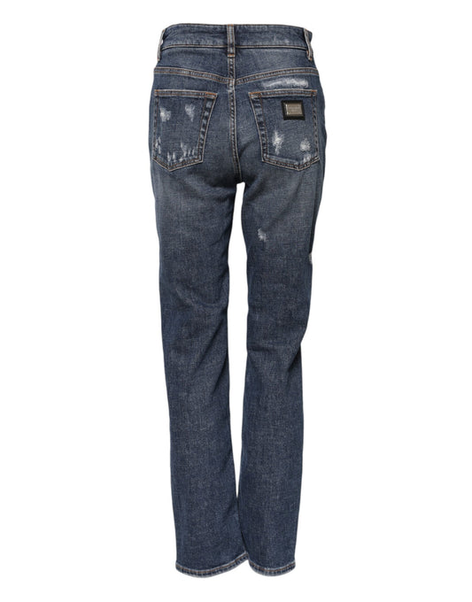 Dolce & Gabbana Blue Cotton Boyfriend Tattered Denim Women's Jeans