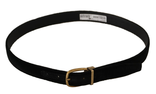 Dolce & Gabbana Black Velvet Leather Gold Tone Metal Buckle Men's Belt