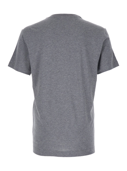 Dolce & Gabbana Men Grey Crewneck T-Shirt With Logo Lettering Print On The Front In Cotton Man