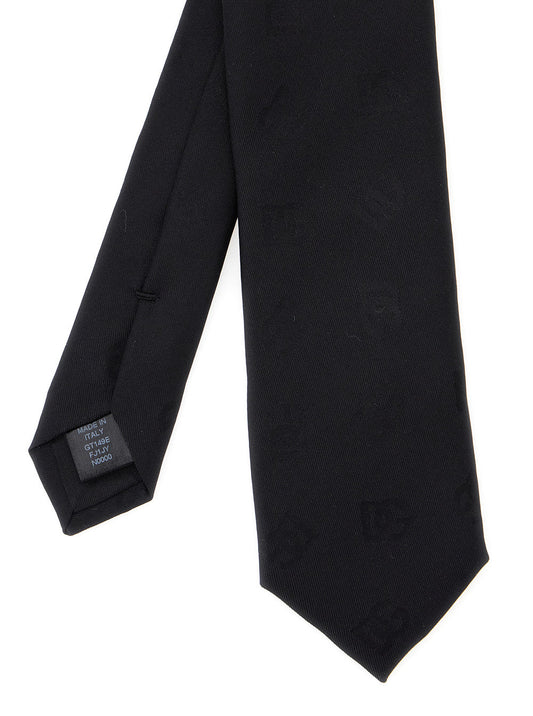 Dolce & Gabbana Men Black Tie With Tie Closure On The Rear And All-Over Logo Embroidery In Silk Man