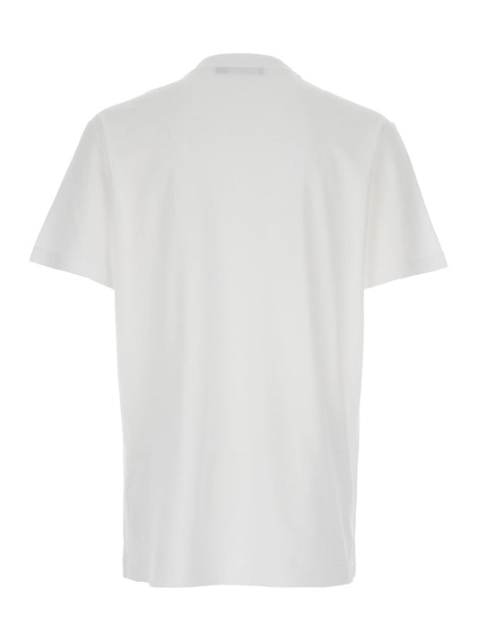 Dolce & Gabbana Men White Crewneck T-Shirt With Logo Embroidery On The Front In Cotton Man