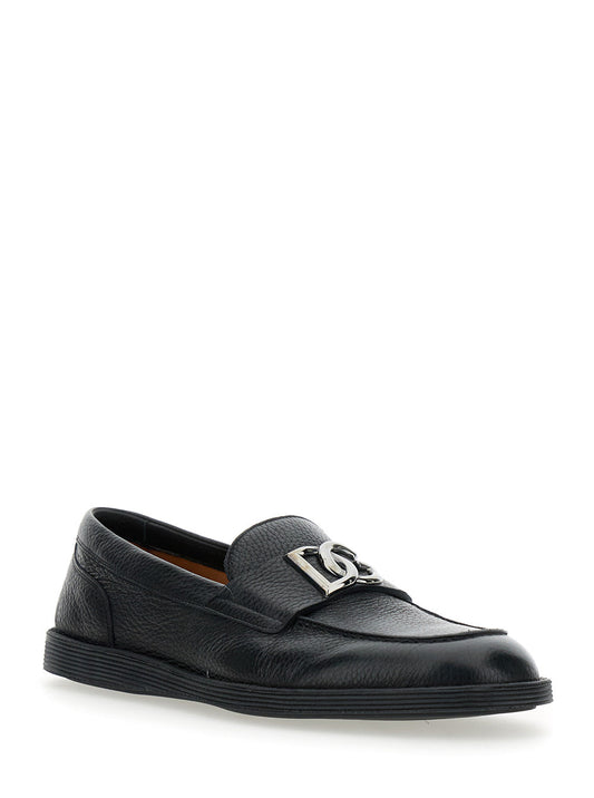 Dolce & Gabbana Men 'Florio' Black Loafers With Dg Plaque On The Front In Grained Leather Man