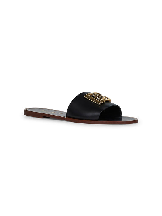 Dolce & Gabbana Women Black Calf Leather Bianca Slides