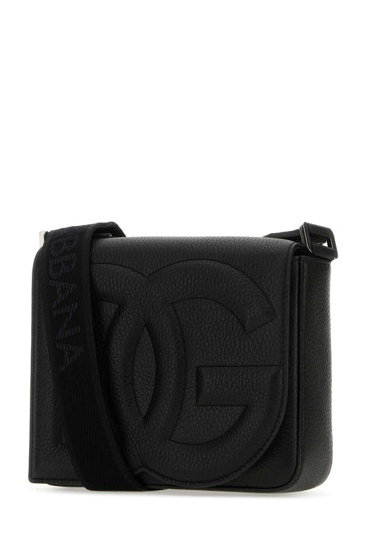 Dolce & Gabbana Men Black Leather Medium Dg Logo Crossbody Bag