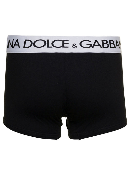 Dolce & Gabbana Men Black Boxer Briefs With Branded Waistband In Stretch Cotton Man