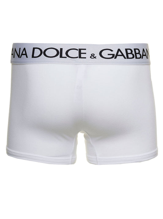 Dolce & Gabbana Men White Boxer Briefs With Branded Waistband In Stretch Cotton Man