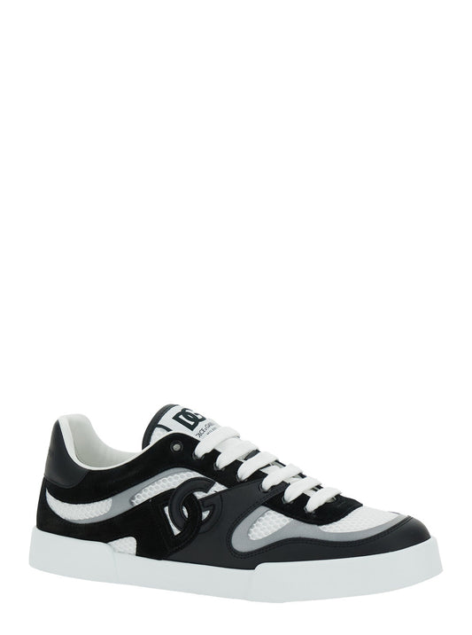 Dolce & Gabbana Men 'Portofino' Black And White Sneakers With Logo Patch On The Tongue And Logo Detail On The Side In Leather Blend Man