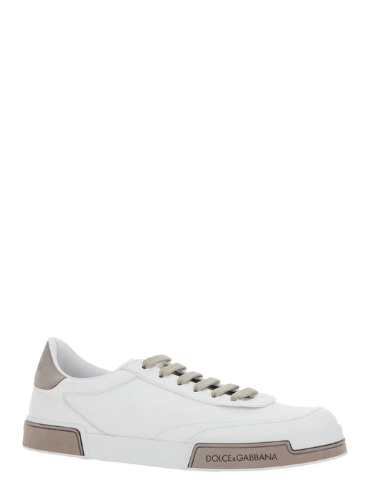 Dolce & Gabbana Men 'Portofino' White Monocrom Low Top Sneakers With Logo Plaque In Leather Man