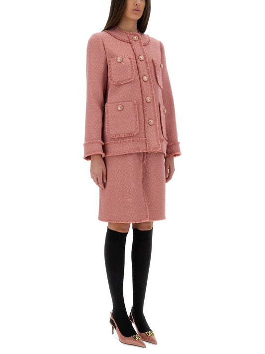 Dolce & Gabbana Women Single-Breasted Tweed Bouclé Short Jacket