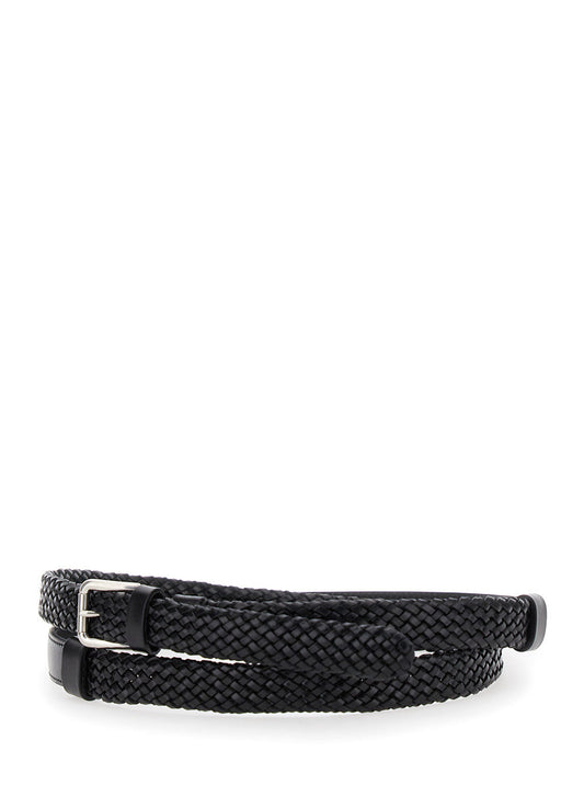 Dolce & Gabbana Men Black Belt With Buckle Closure And Interwoven Design In Leather Man
