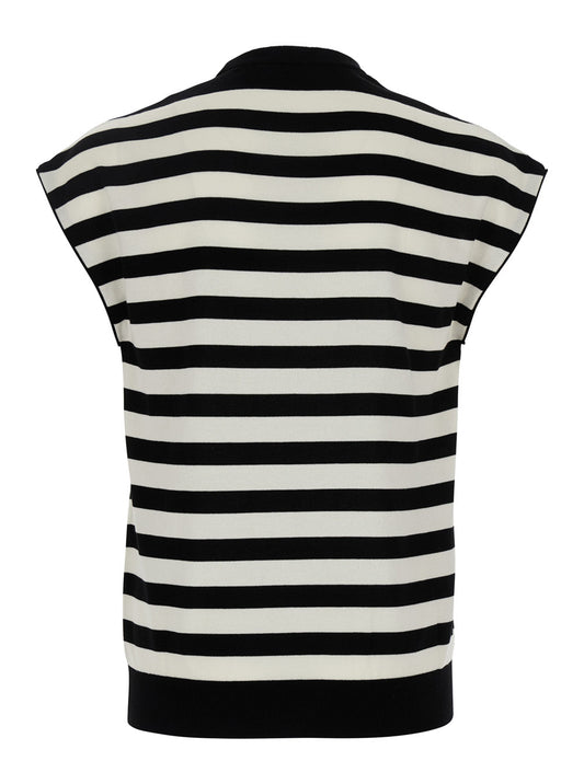 Dolce & Gabbana Men Black And White Sleeveless Top With Round Neck And All-Over Strpied Motif In Cotton Woman